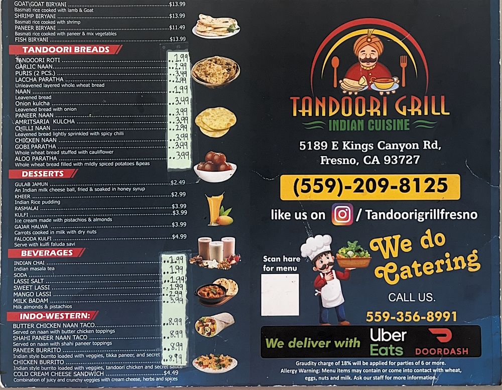 Tandoori Grill Fresno, located at 5189 E Cesar Chavez Blvd, offers a delightful journey through Indian cuisine. The menu is a vibrant tapestry of flavors, featuring a variety of dishes that cater to all palates, including vegetarian and non-vegetarian options.