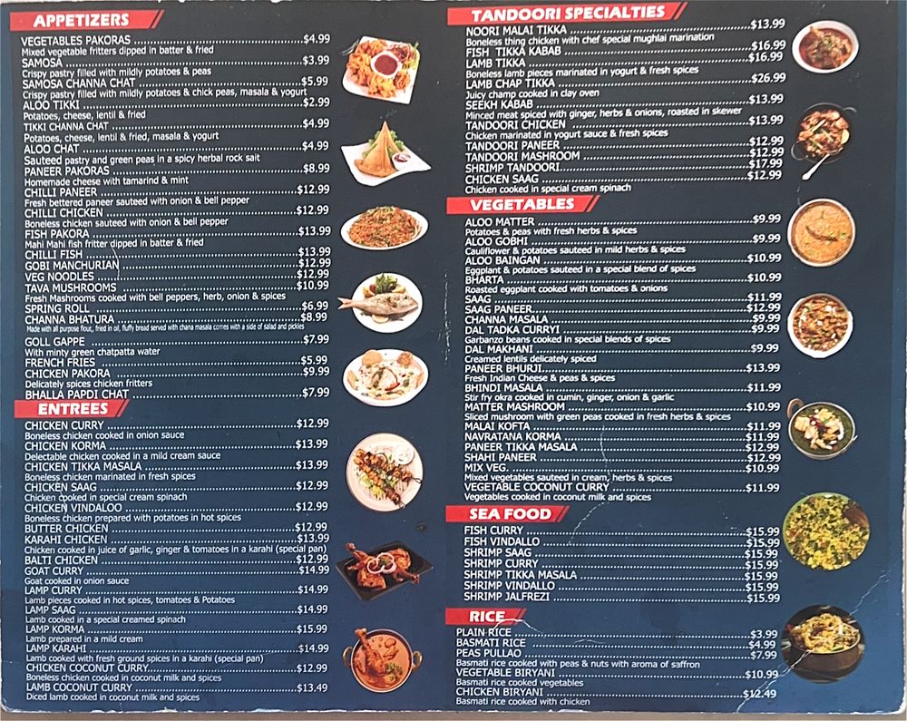 - Seafood Specialties: Dive into the Fish Curry and Shrimp Tandoori for a taste of coastal India.